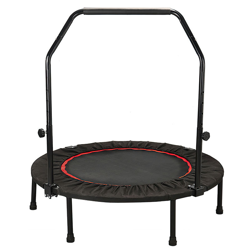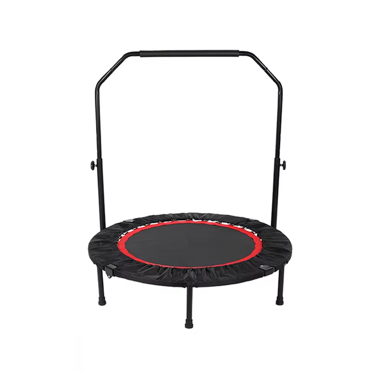 3. Verstellbarer Lenker für individuellen Komfort: Das Trampolin ist mit einem höhenverstellbaren Lenker ausgestattet, sodass Benutzer die Unterstützung je nach ihren Vorlieben und Trainingsintensität anpassen können. Diese Funktion ist besonders für Familien mit mehreren Benutzern von Vorteil, da sie unterschiedlichen Körpergrößen und Fitnessniveaus Rechnung trägt. Das ergonomische Design des Lenkers sorgt für einen bequemen Halt und eignet sich daher für hochintensive Trainingseinheiten, Rehabilitationsübungen oder gelegentliches Hüpfen.