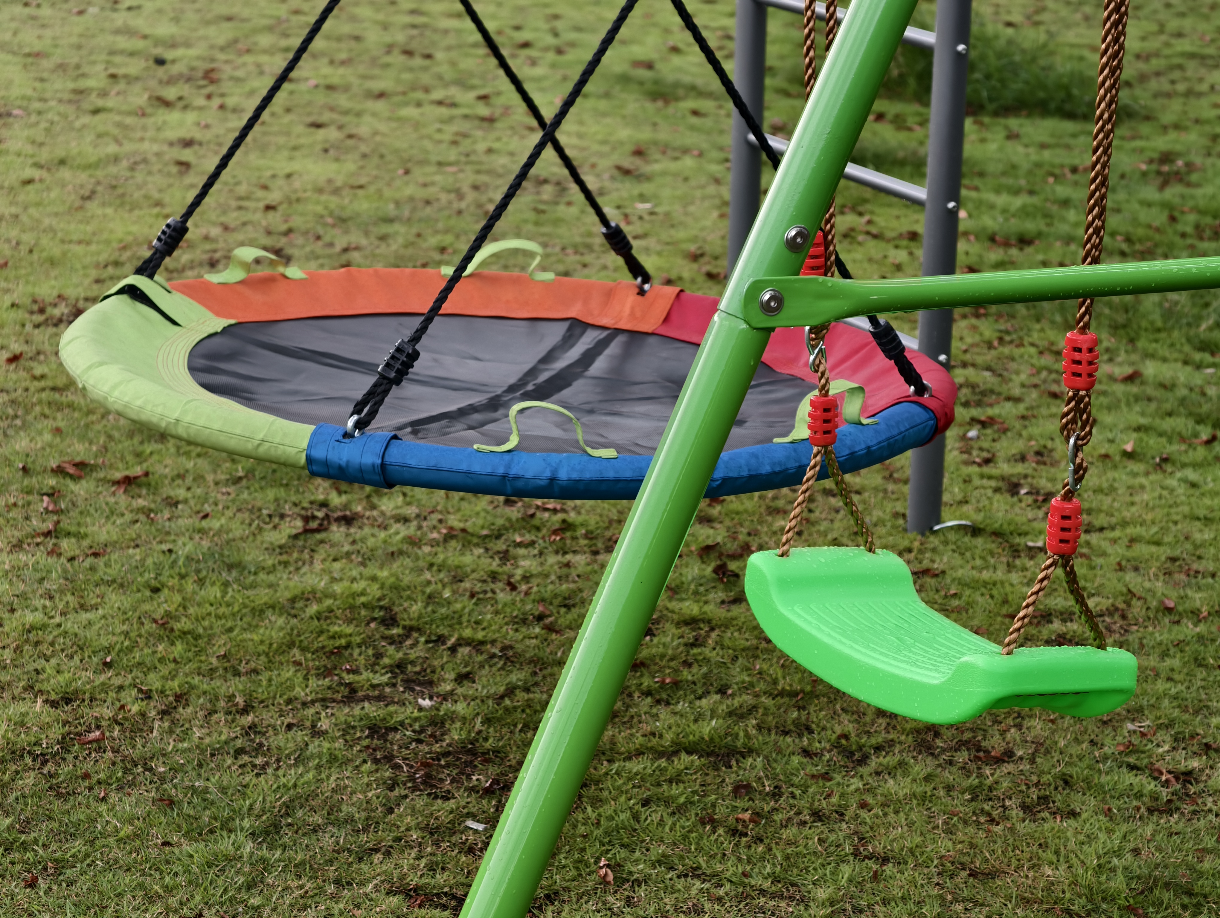 Kombiniert eine Kletterstange und eine Schaukel für endlosen Spaß. Enthält eine Kletterstange, eine Einzelschaukel und eine Doppelschaukel aus Stoff. Perfekt zum Klettern, Klimmzügen, Schwingen und mehr – ideal für abwechslungsreiche Aktivitäten, die die ganze Familie gemeinsam genießen kann.