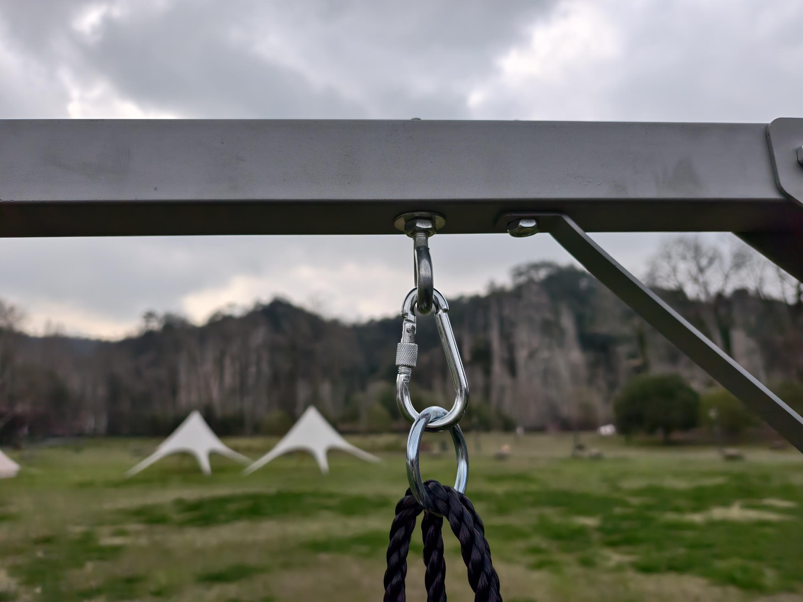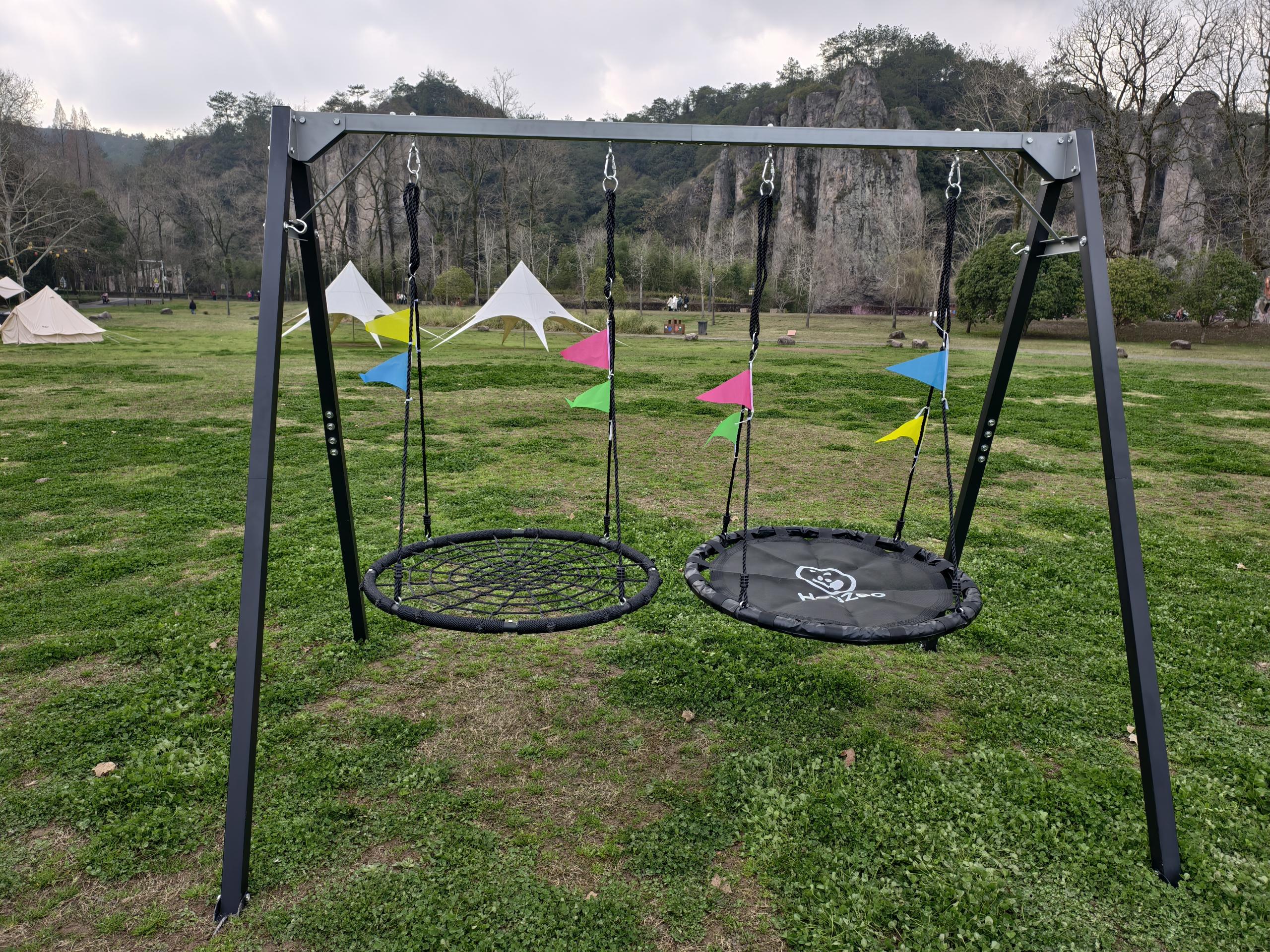 1. Zwei-Personen-Sharing-Design, reichhaltigeres interaktives Erlebnis: Das Set umfasst zwei unabhängige schwarze Schaukeln und einen kompatiblen Schaukelrahmen, der zwei Personen gleichzeitig aufnehmen kann und so die „Einsamkeit“ traditioneller Einzelschaukeln durchbricht. Es erfüllt die Bedürfnisse mehrerer Personen und macht die Freizeit im Freien voller Kameradschaft und Lachen, geeignet für familiäre, soziale und verschiedene andere Szenarien.