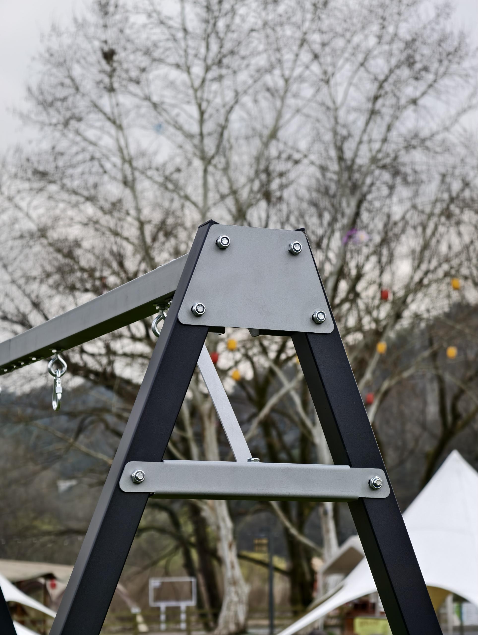 2. Hochwertige Materialien + einheitliches schwarzes Erscheinungsbild, hohe Ästhetik und Haltbarkeit: Der Schaukelrahmen besteht aus verstärktem und verdicktem Stahl, der für Rost- und Korrosionsbeständigkeit behandelt wurde, gepaart mit einer schwarzen Beschichtung, die verschleißfest und kratzfest ist, Sonne und Regen im Freien standhält und bei Langzeitgebrauch stabil und farbecht bleibt; Die beiden Schaukeln verwenden hochfeste Netzflächen aus PE-Material, die weich und bequem sind und eine hohe Tragfähigkeit aufweisen, was die Fahrsicherheit gewährleistet. Der einheitliche Schwarzton kombiniert eine gleichmäßige Textur mit vielseitigen Eigenschaften und lässt sich problemlos in verschiedene Außenbereiche wie Innenhöfe und Terrassen integrieren, wodurch die Gesamtästhetik der Szene verbessert wird.